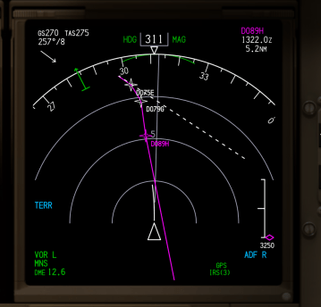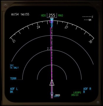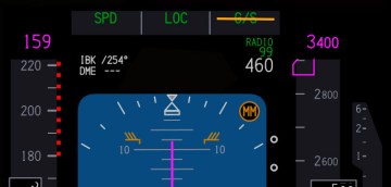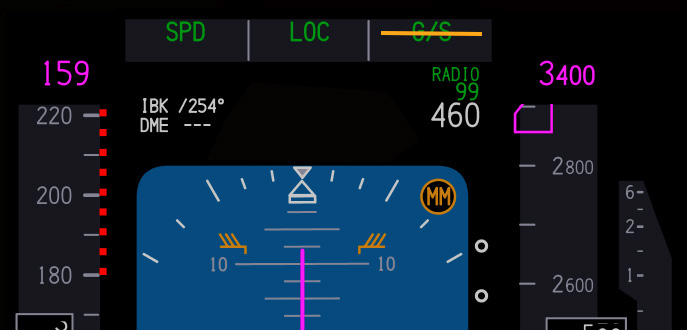 – A siklópálya (G/S) módot sárga vonal húzza át a PFD-n.