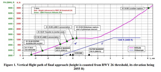 A személyzet tisztában volt a magasság problémával, amellyel kapcsolatban erős nemtetszések nyoma hallható a rögzítőn. Vélhetően a süllyedés kezelése szorította be őket annyira tudatilag, hogy az egyébként is viszonylag rövid végegyenesen elhibázzák a 3°-os siklópályát.