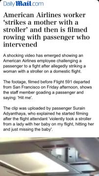 Kicsivel később és sokkal kisebb sajtófelhajtás mellett kerültek elő olyan részletek, hogy a repülőgépen a két gyermekkel utazó argentin hölgy mindenáron el akarta helyezni a babakocsit, miközben a személyzet rászólt hogy azt le kell tenni az utazás idejére a csomagtérbe. A kismama erről tudomást nem véve szerette volna a felső csomagtárolóban elhelyezni a kocsit. A személyzet egy férfitagja megpróbálta ezt megakadályozni, és levinni a kocsit a gépről. A hölgy hangosan kiabálni kezdett vele, mire az utaskísérő a biztonságiakat kérte. Kisebb huzavona támadt a babakocsi körül, majd a hölgy közelebbről meg nem nevezett agresszív mozdulattal megragadta az utaskísérőt. Ekkor az erővel elvette a babakocsit, miközben a kocsi megütötte az utast, és állítólag kishíján az egyik gyermeket is.
