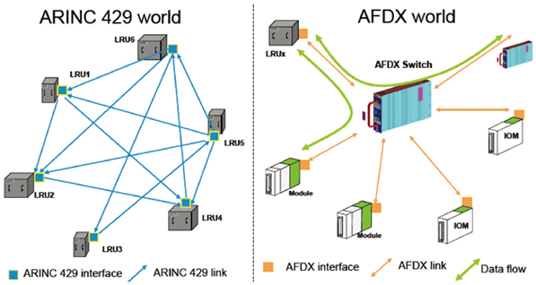 Az AFDX a mai repülőgépek nagysebességű “idegrendszere” vagyis egy kétirányú kapcsolt Ethernet hálózat, amely a korábbi sodrott érpáros adatbuszok sávszélességét egy hatvánnyal képes stabilan megelőzni. Ez teszi lehetővé többek közt, hogy úgynevezett csillag topológiát alkalmazzanak a hálózatban: