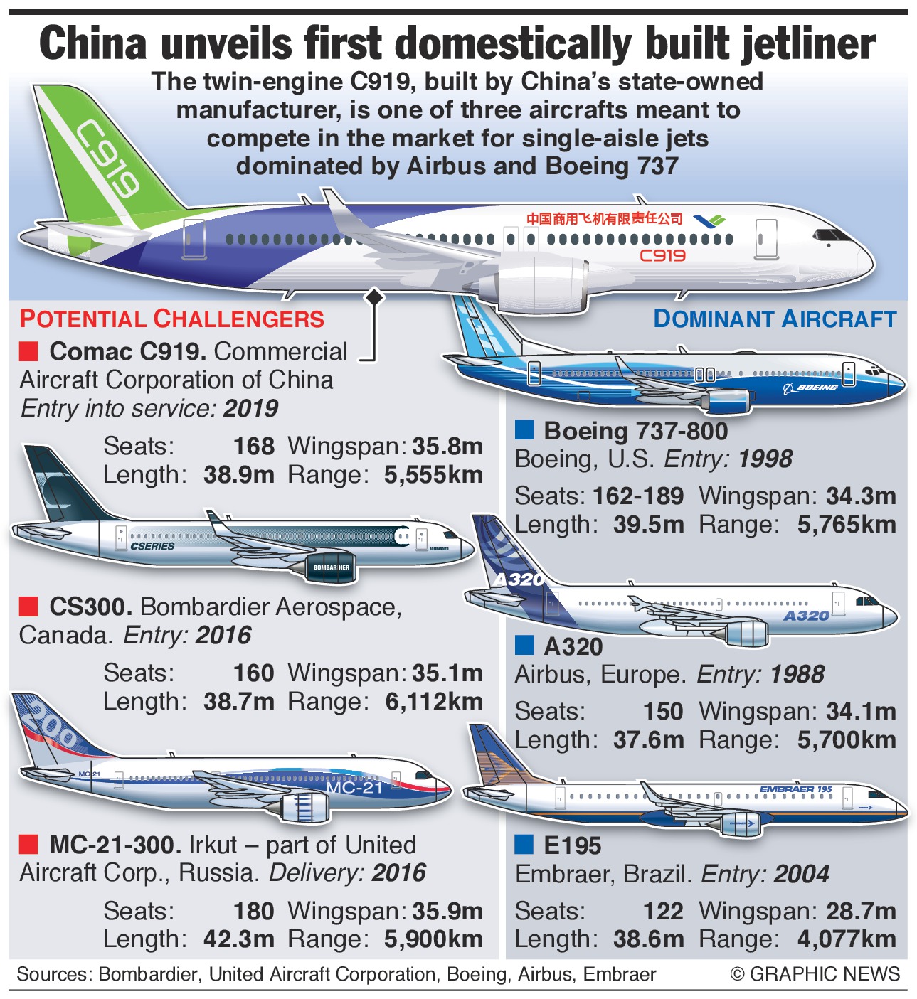 A kínai polgári légügyi hivatal (CAAC) közel félmilliárd légiutast regisztrált a múlt évben. Ez a 2015-ös bázishoz képest 12% növekedés. Elemzők szerint 2030-ra Kína lehet a legnagyobb belső légipiaccal rendelkező ország. A Boeing saját prognózisa szerint ugyanakkor a következő 20 évben 5100 db középhatótávolságú egyfolyosós repülőgépet vesz fel a jelenleg 55 légitársaságból álló vásárlóerő.