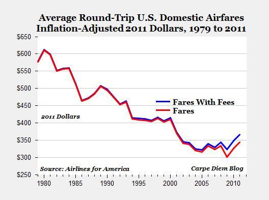 A szüleink nemzedékének több ezer dollárba kerülne a mai pénzben egy transzatlanti járat. Még a két amerikai partvidék közt is viszonylag kevesek engedhették meg a repülést. Az 1970-es évektől kezdve a New York-Hawaii-i jegyek ára közel 3000 dollárba került, az inflációhoz igazítva.