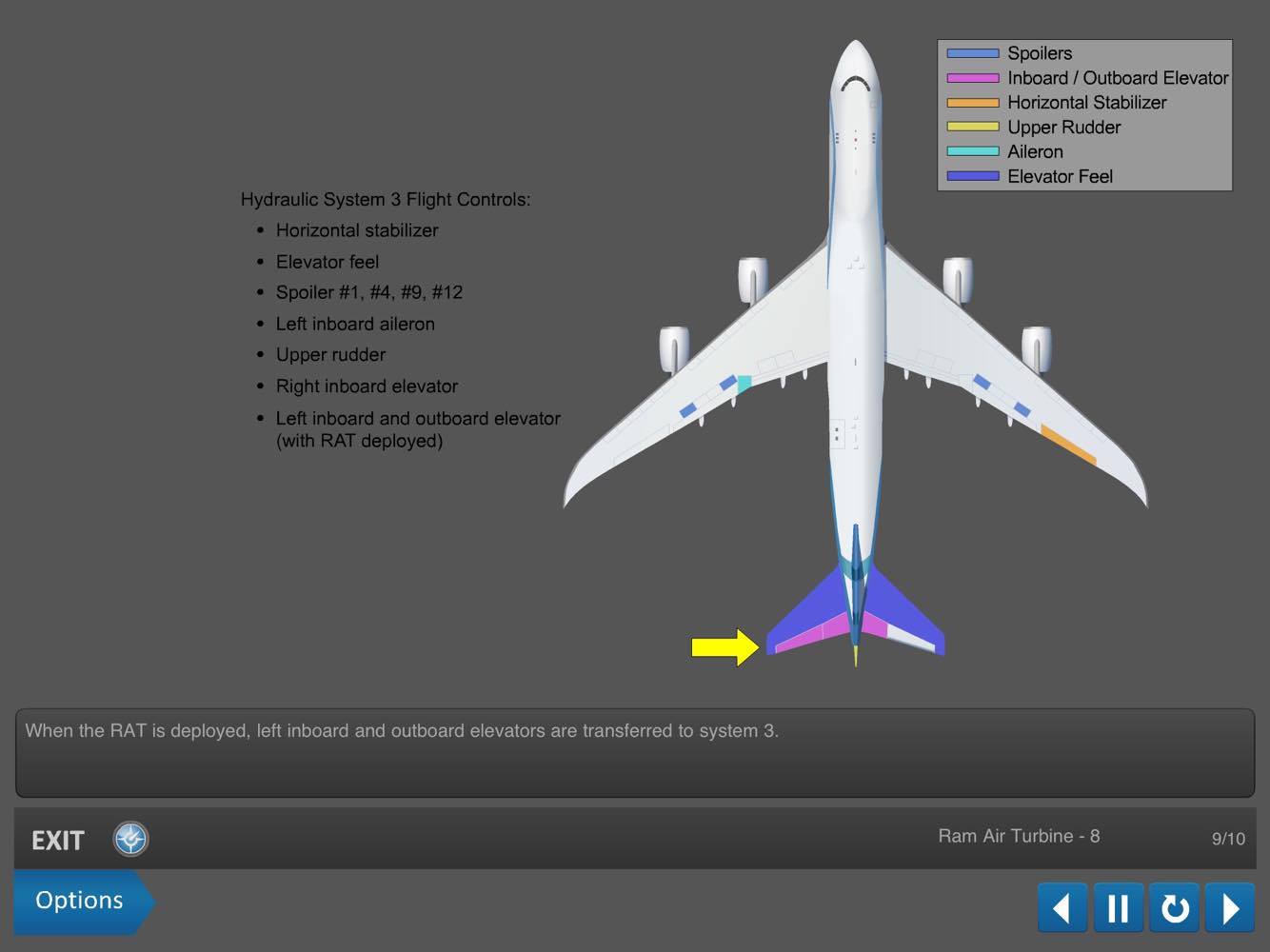Döbbenetes a motorok ereje. Szimulátoron, kipróbálhattuk azt is, hogy milyen 1 (!!!) motorral repülni. Még ekkor is üzemel az autopilota, hiszen működik még két hidraulika rendszer, mert ez a gép már rendelkezik hidraulika nyomás előállítására képes, kibocsájtható légturbinával (RAT).