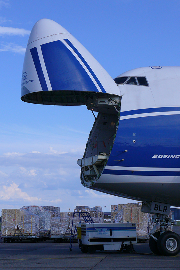 Az orr nyithatósága egyrészt a gyors rakodást, másrészt a szabvány palettáknál, konténereknél nagyobb áruk fogadását is lehetővé teszi. A járat 70 tonnás rakományát szintén az R-Bag hálózat szervezte Budapestre.