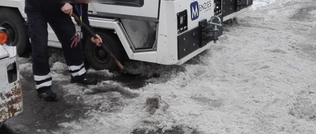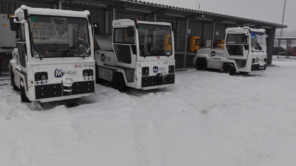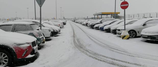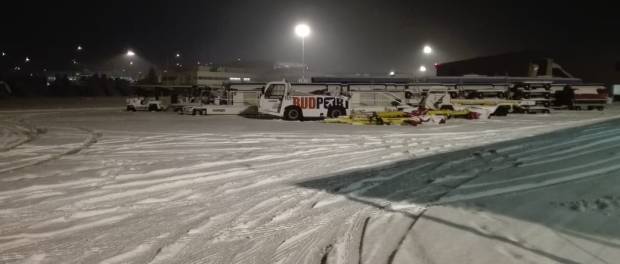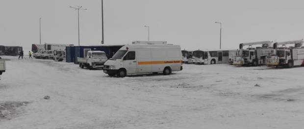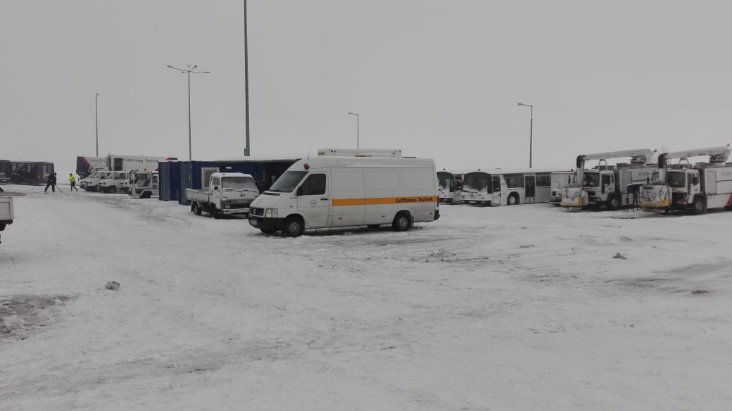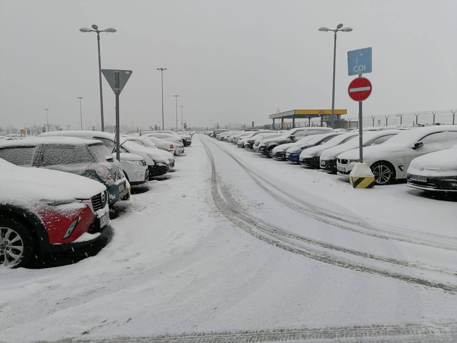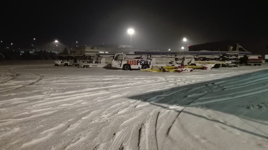 A repülőtéren dolgozó kiszolgálócégek és a repülőgépkarbantartó cégek eszközparkolója a pl. így nézett ki egy nappal a havazás után: