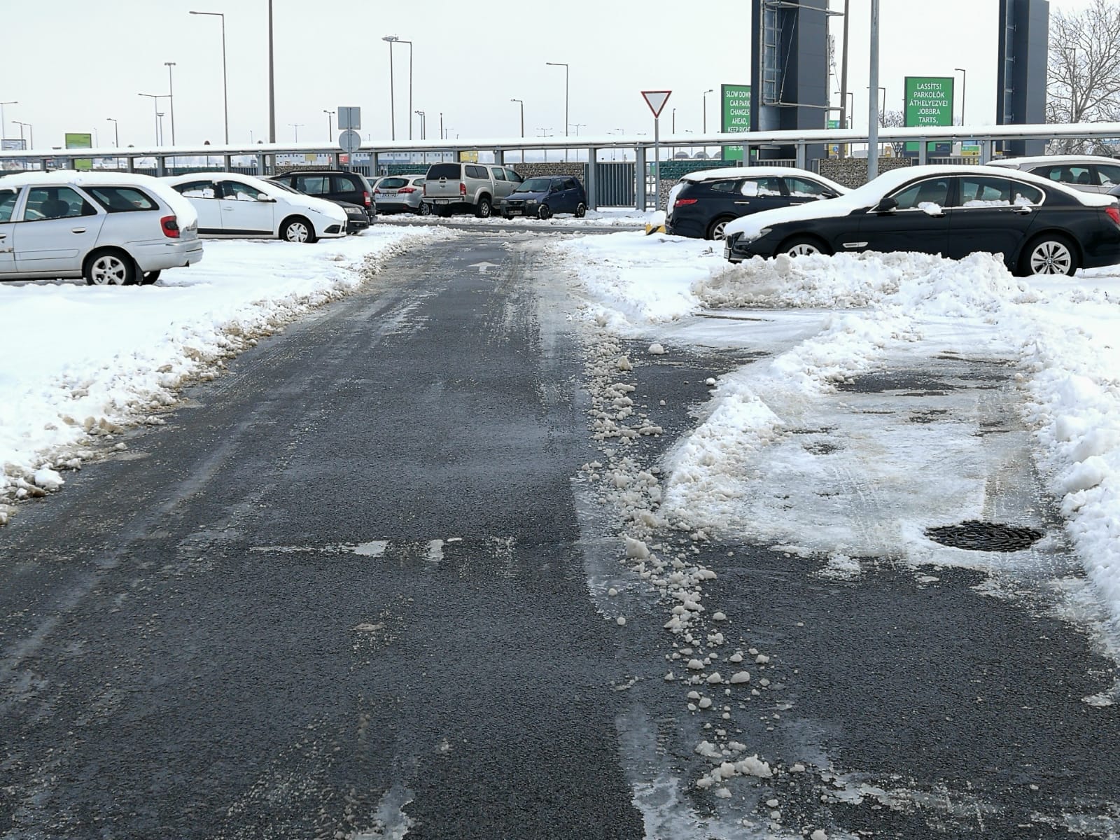 A parkolók sem kedden, sem napokkal később nem voltak rendesen eltakarítva. Márpedig a repülőtér honlapja szerint állandóan üzemelő parkolók olcsónak semmiképp nem mondható díjában nem csak a nyári üzem van benne – szép, száraz időben.