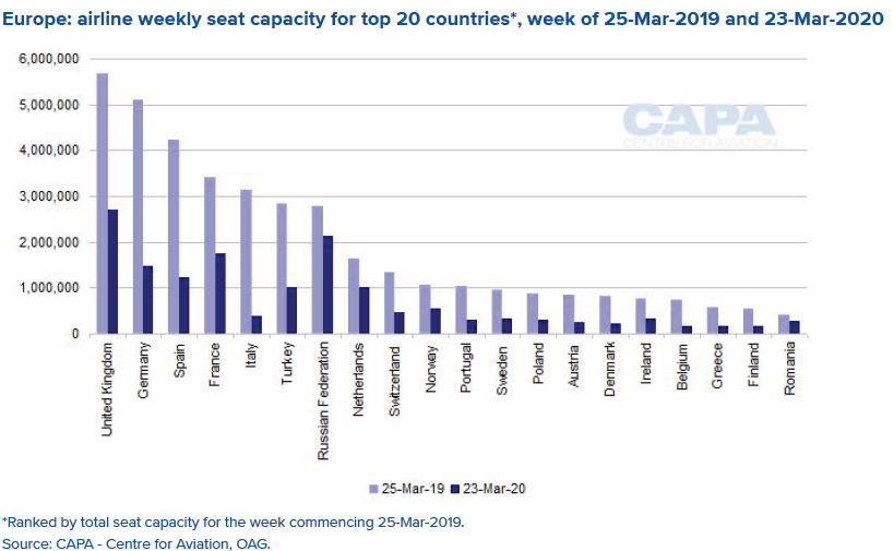 Közben az egy évvel korábbi adatokhoz képest az európai cégek igen durván, akár 90%-ot is visszavágnak a kapacitásból, ami a gyakorlatban néhány utasjáratot, a kormányokkal együttműködésben bonyolított hazatelepítéseket, és a járvány elleni védőeszközök, orvosi berendezések fuvarozását jelenti.